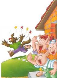 __Porquinhos, deixem eu entrar só um pouquinho! __ De forma alguma Seu Lobo, vá embora e nos deixe em paz.- disseram os porquinhos.